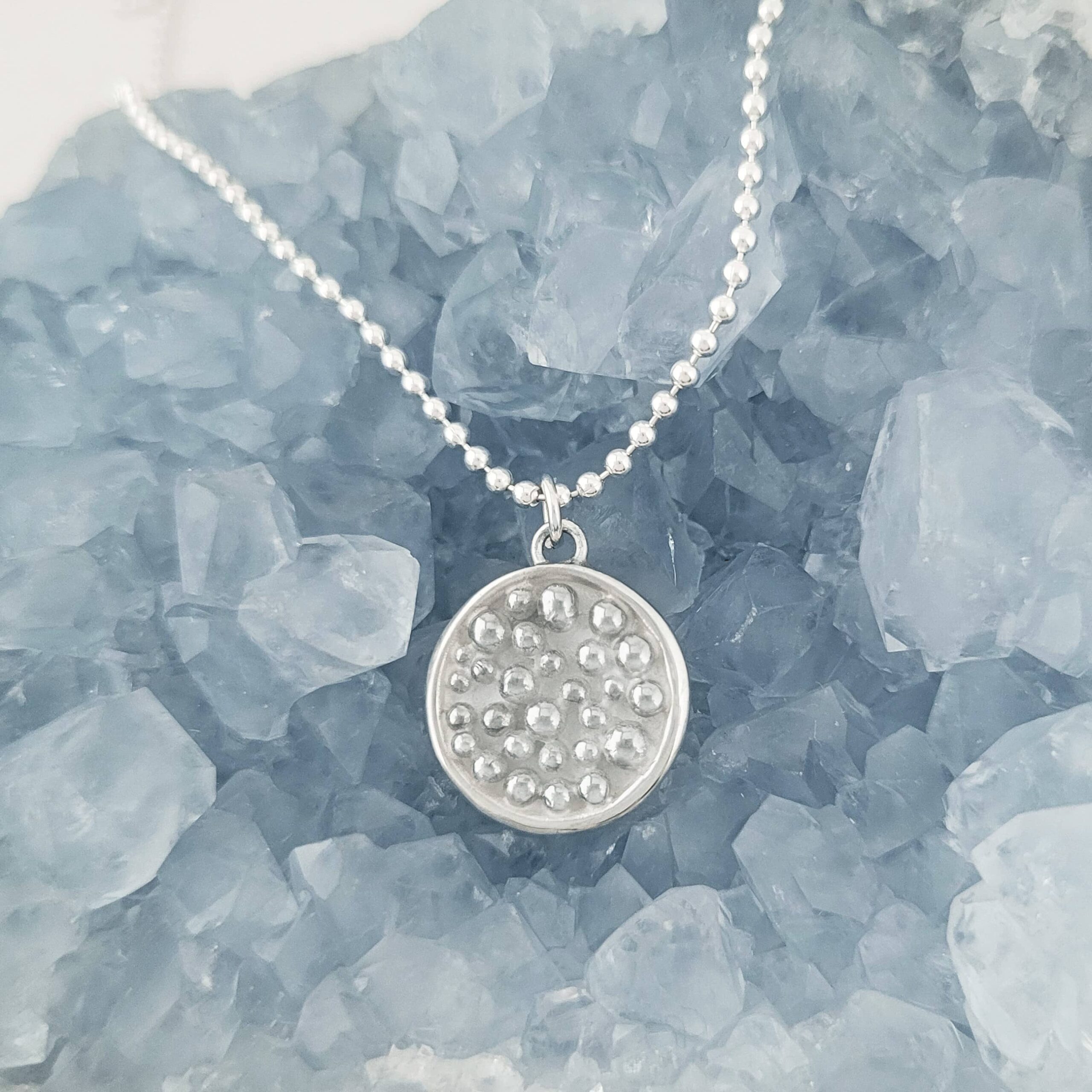 - Size: Pendant: 14mm; Sterling bead chain: 18”